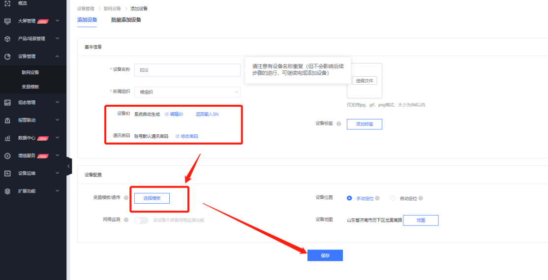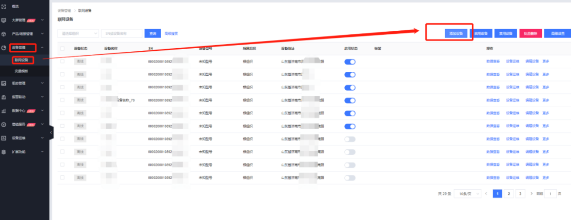 2.點擊“設(shè)備管理”----“聯(lián)網(wǎng)設(shè)備”------“添加設(shè)備”