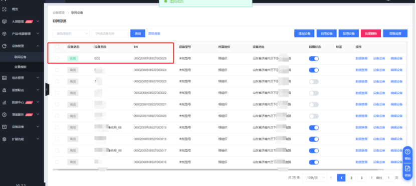 設(shè)置完成之后,可以看到設(shè)備在云端上線。
