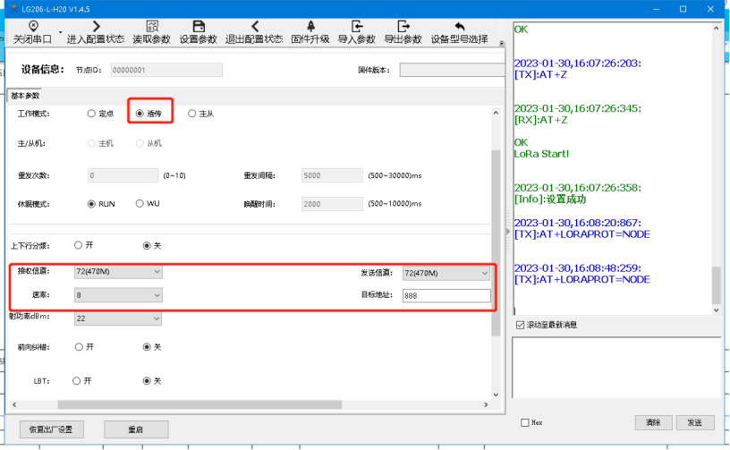 SNR:信噪比(越大越穩(wěn)定) ,RSSI:接收信號(hào)的強(qiáng)度指示(越大越穩(wěn)定) 注:建議在 RSSI 的值介于- 120~0 的范圍內(nèi)使用,該值僅做參考,實(shí)際應(yīng)用應(yīng)以丟包率為準(zhǔn)!