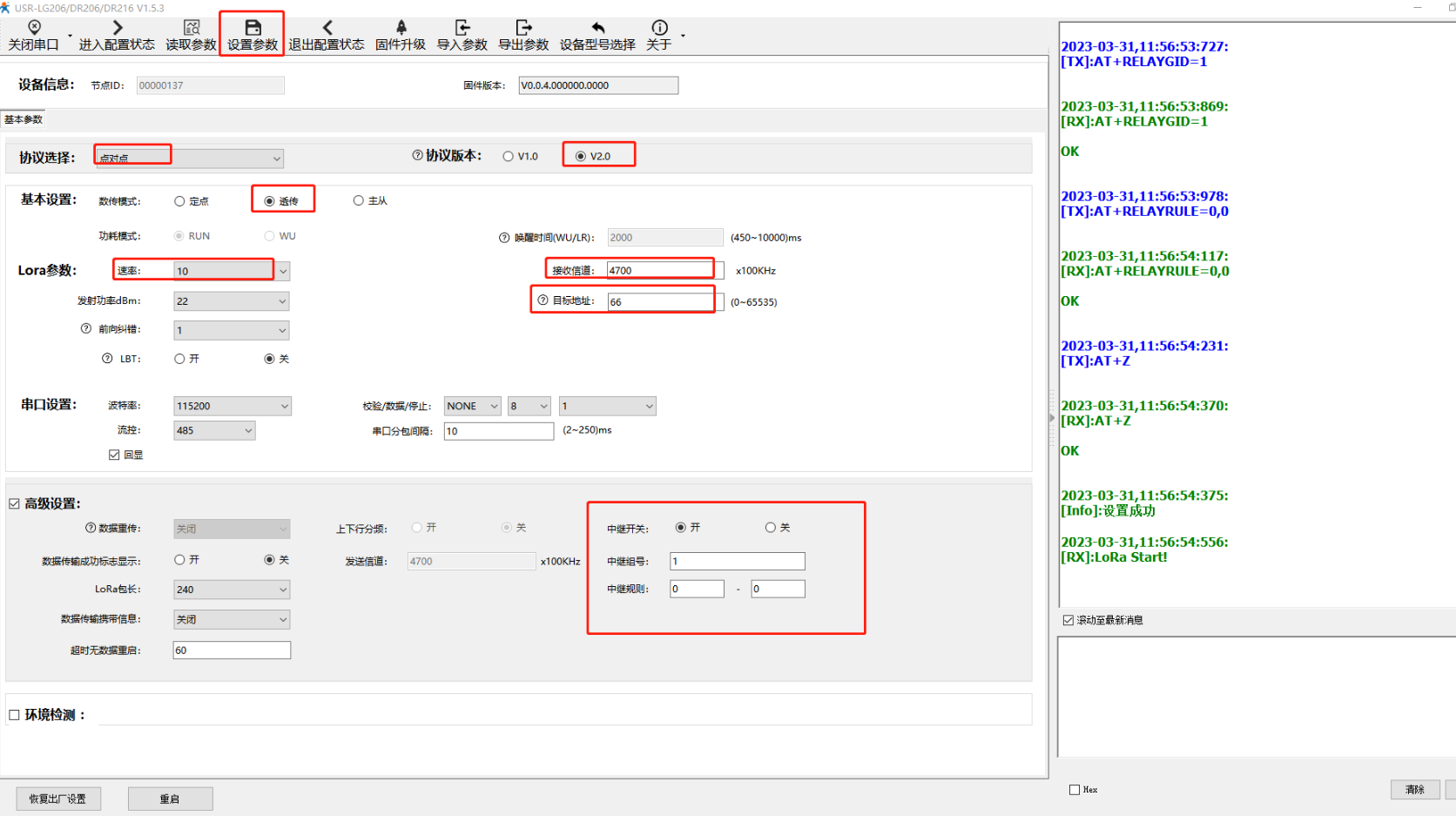 2、第二個(gè)USR-DR206-L參數(shù)設(shè)置(中繼1)