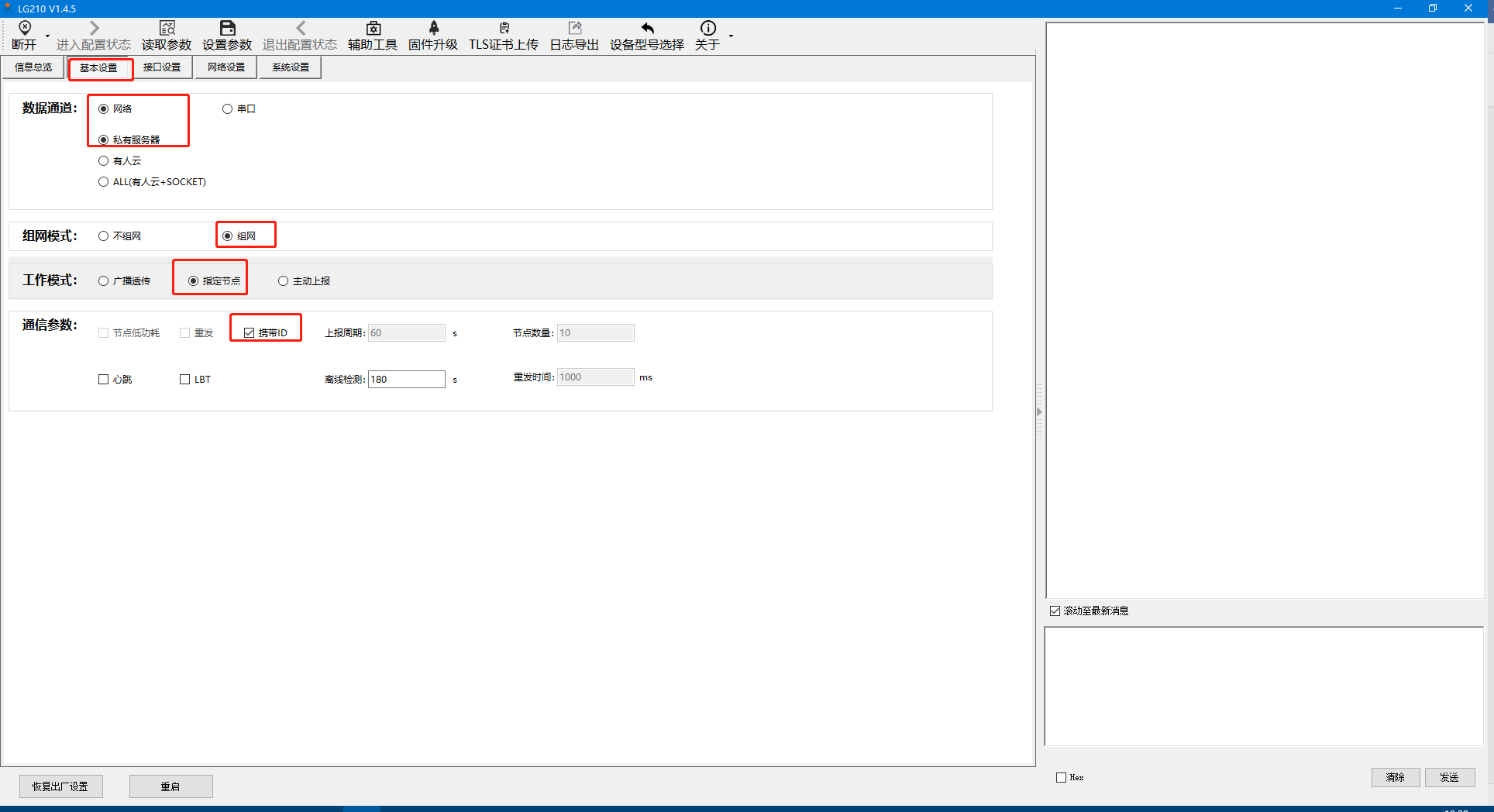 1、核實LG210與DR206的參數配置是否選擇組網、速率以及信道是否匹配.