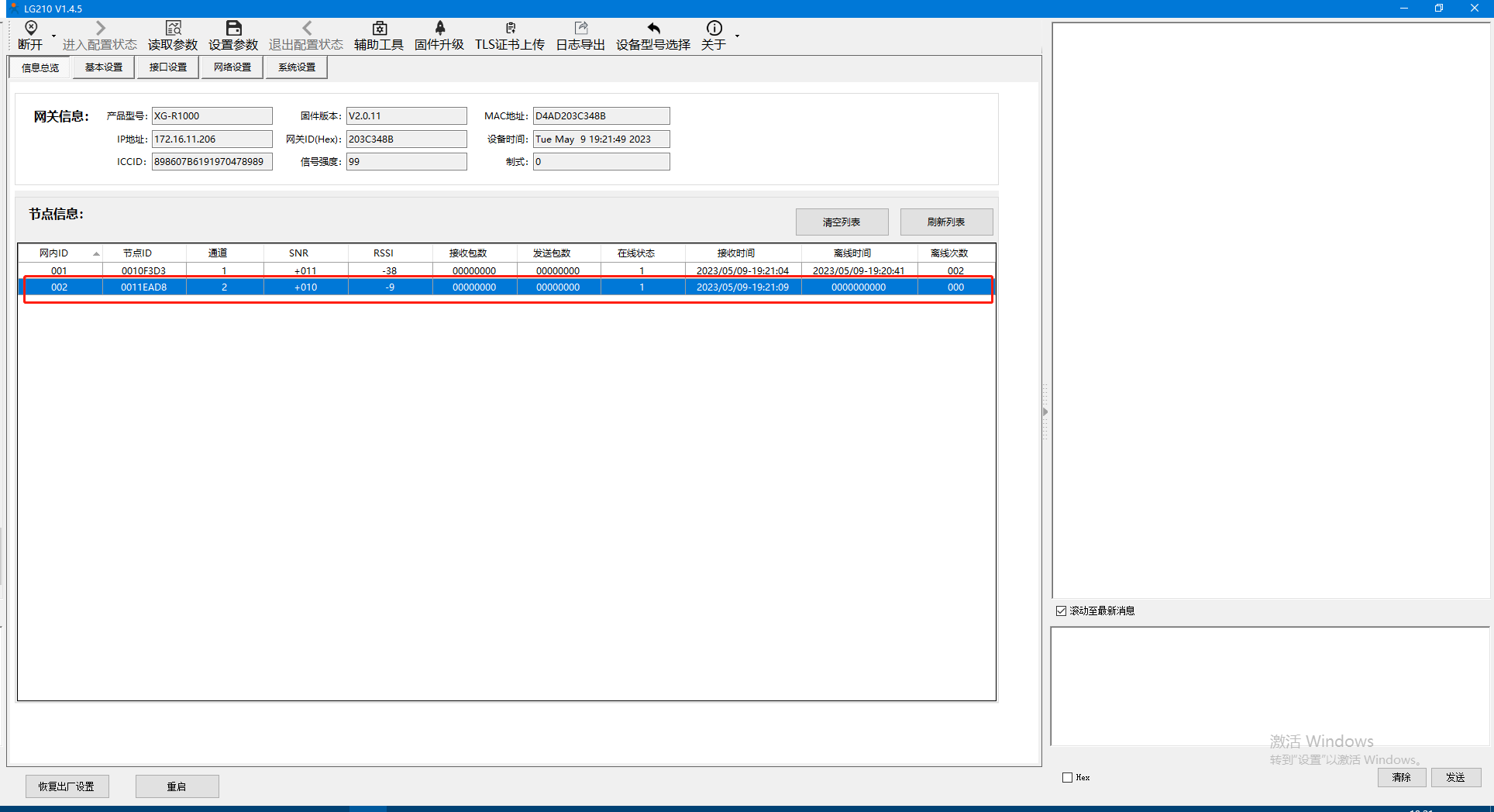 8、LG210重新獲取參數,在節(jié)點信息中可以看到添加的USR-DR206-L已組網成功。