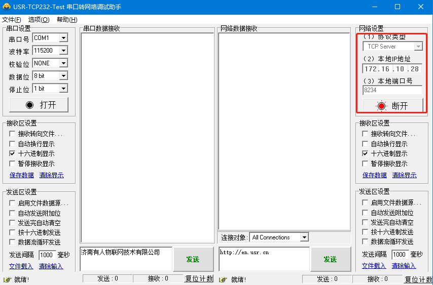 4、USR-TCP232-TEST串口調試助手軟件官網下載鏈接:http://www.ciyusy.cn/Download/27.html
