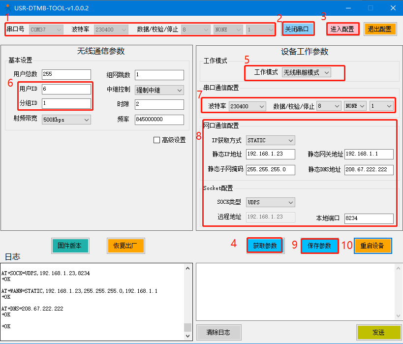 電腦打開USR-DTMB-TOOL設(shè)置軟件