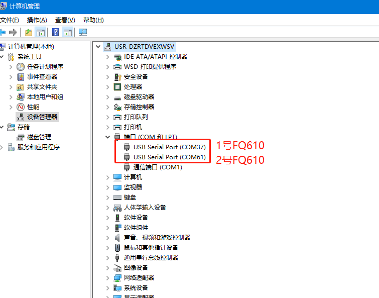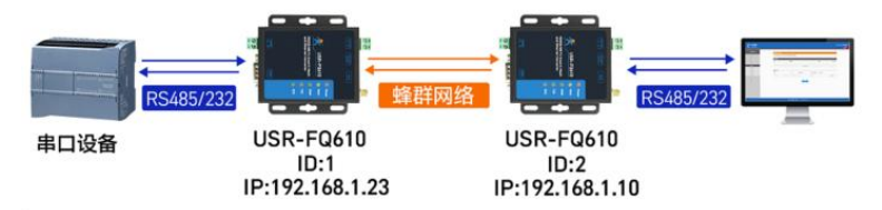 為方便測(cè)試,兩臺(tái)USR-FQ610串口均接電腦進(jìn)行測(cè)試。