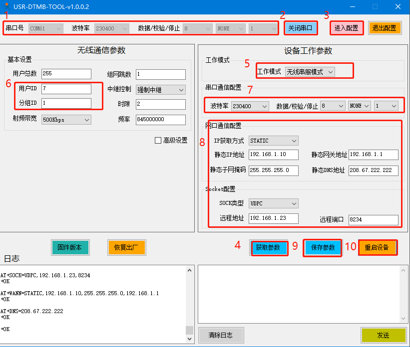 I. 點(diǎn)擊保存參數(shù),點(diǎn)擊重啟設(shè)備,點(diǎn)擊關(guān)閉串口。