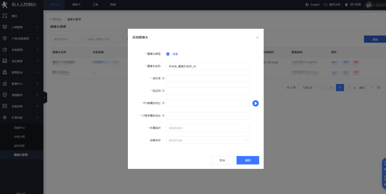 有人云網址:https://mp.usr.cn/#/cloudV2/extend/ViewCameraList