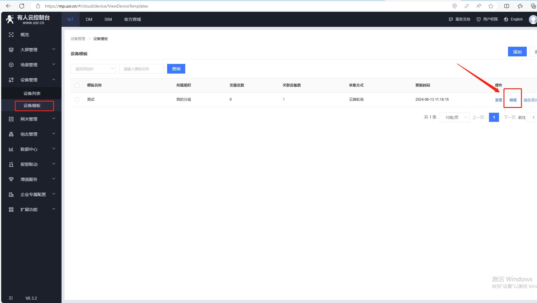 (7)添加變量,點(diǎn)擊設(shè)備管理,點(diǎn)擊設(shè)備模板,點(diǎn)擊編輯。