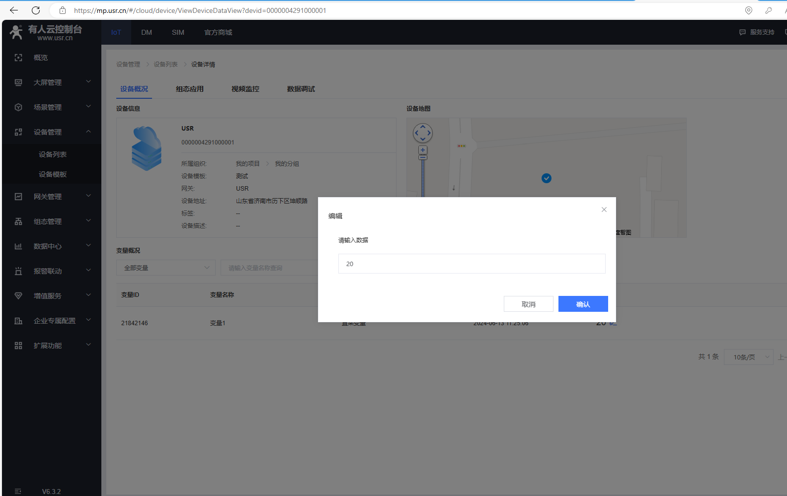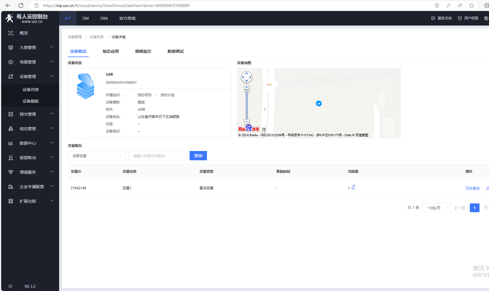 5、USR-TCP232-ED2設(shè)置完參數(shù),網(wǎng)口用網(wǎng)線連接可以上外網(wǎng)的路由器的LAN口。有人云設(shè)備在線,返回設(shè)備列表,點(diǎn)擊設(shè)備名稱,可以去查看變量當(dāng)前值。