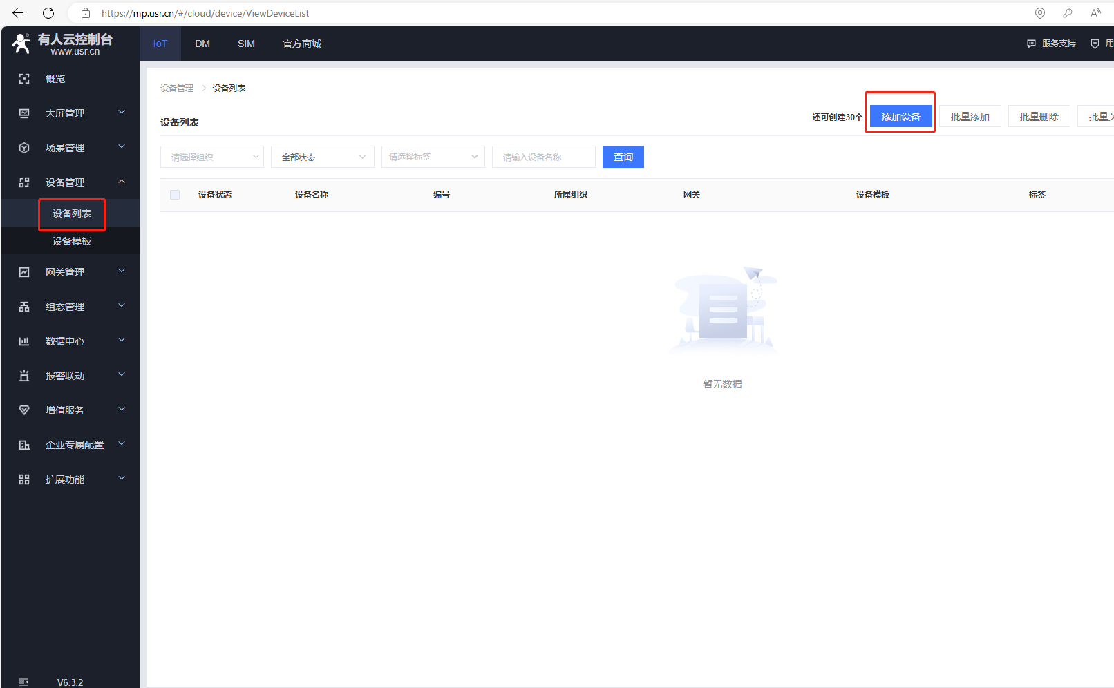 (4)添加設(shè)備,點(diǎn)擊設(shè)備管理,點(diǎn)擊設(shè)備列表,點(diǎn)擊添加設(shè)備。
