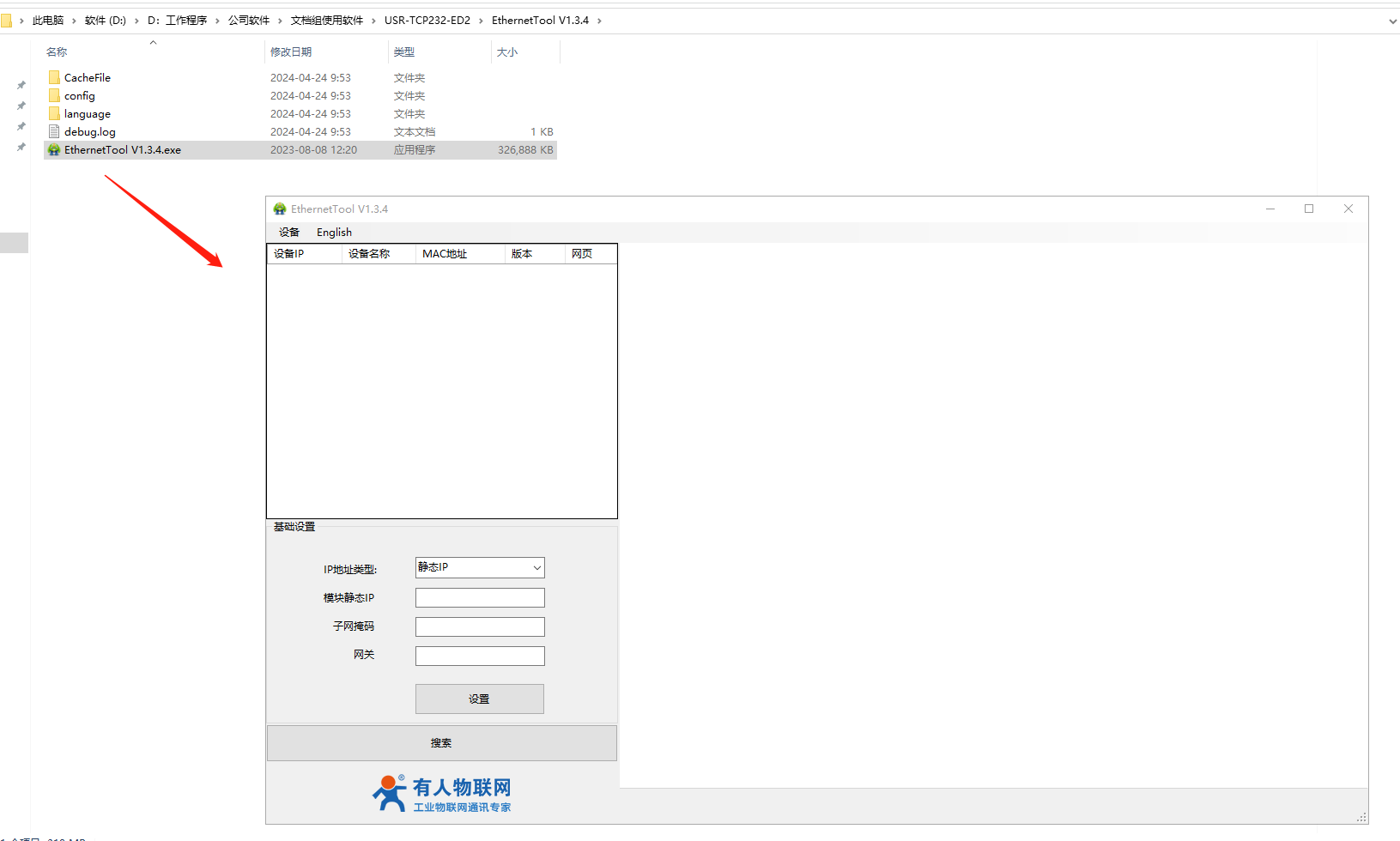 1、局域網(wǎng)搜索USR-TCP232-ED2 IP