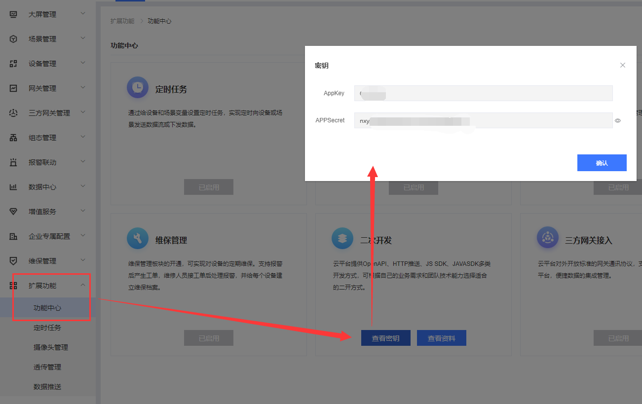 A、申請二次開發(fā)權(quán)限后,可在擴展功能-功能中心中查看密鑰