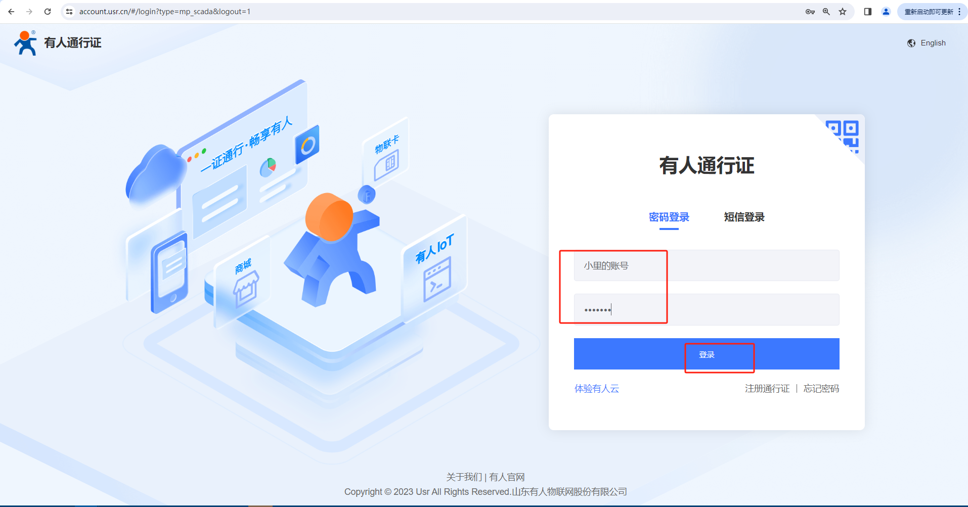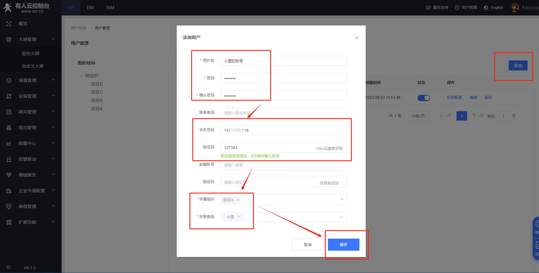 3.用添加子用戶的手機號或者用戶名+密碼,可以登錄子賬號,后續(xù)添加組織A下的網(wǎng)關,可以在子賬號里看到