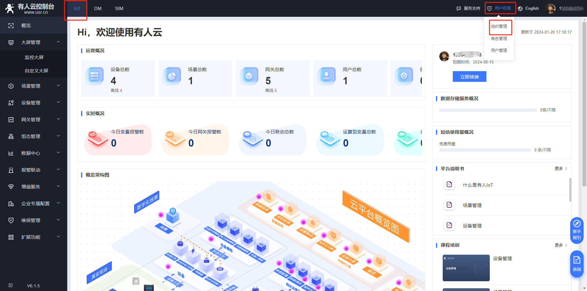有人云(V6版本)組織、子用戶和用戶權限如何設置