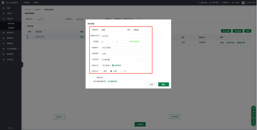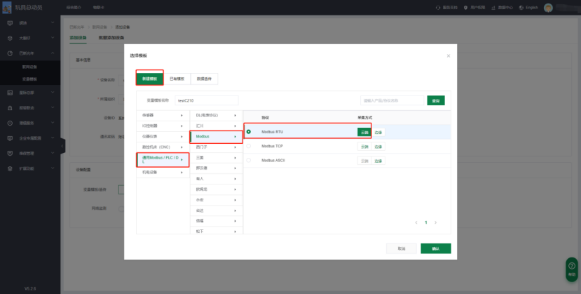 3>新建模板,目前云平臺支持的是modbus協(xié)議
