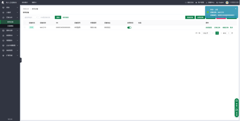 5>附加功能--注冊包--開啟--類型選擇cloud,將之前云端添加的C210的設(shè)備ID和密碼填寫到注冊包里