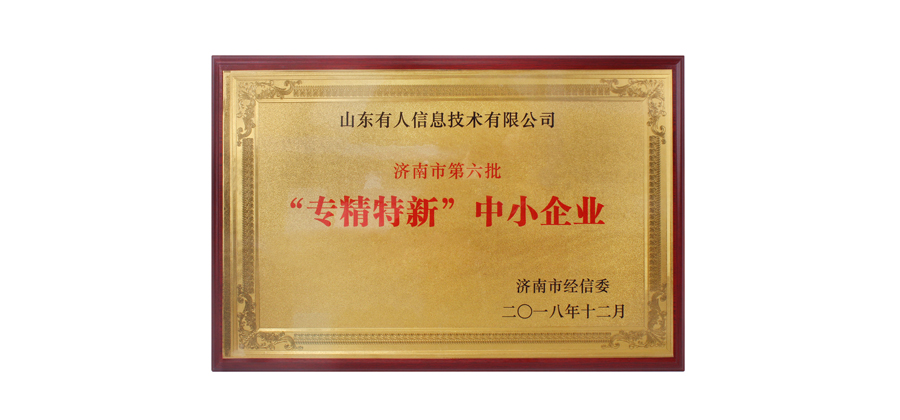 12月21日,有人物聯(lián)網(wǎng)榮獲由濟南市經(jīng)濟和信息化委員會評選的“第六批專精特新中小企業(yè)”稱號。