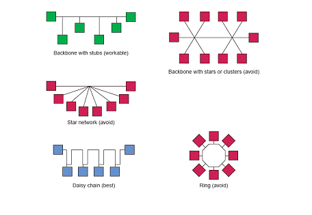 幾種類(lèi)型的網(wǎng)絡(luò)拓?fù)涠际强赡艿?,但是菊花鏈總線配置是最有效的。通常,單元之一是控制網(wǎng)絡(luò)流量的主機(jī),并防止多個(gè)驅(qū)動(dòng)程序同時(shí)處于活動(dòng)狀態(tài)(總線爭(zhēng)用)。屏蔽雙絞線電纜是物理介質(zhì)。電纜阻抗應(yīng)在100-120的范圍。在采用雙頭螺栓技術(shù)的骨干網(wǎng)中,不得在設(shè)備端斷開(kāi)任何雙頭螺栓的連接。否則,這種螺柱將充當(dāng)天線,并在RS485總線上引入大量噪聲,以至于把通訊的可能變得不可能。這實(shí)際上是一個(gè)相當(dāng)普遍的問(wèn)題根源。 電纜越長(zhǎng),數(shù)據(jù)速率越低: