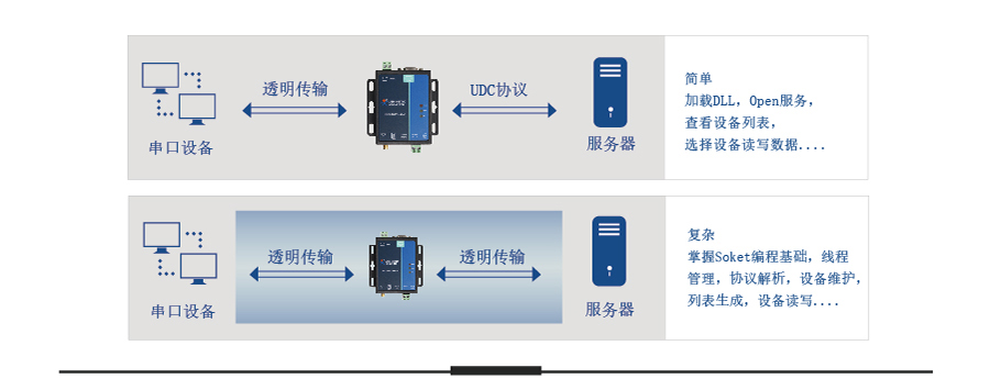提供了服務(wù)器端二次開發(fā)包,用戶掌握設(shè)備的上線情況和數(shù)據(jù)傳輸,既方便了用戶開發(fā), 也提高了服務(wù)器端的統(tǒng)一性,穩(wěn)定性和可靠性。