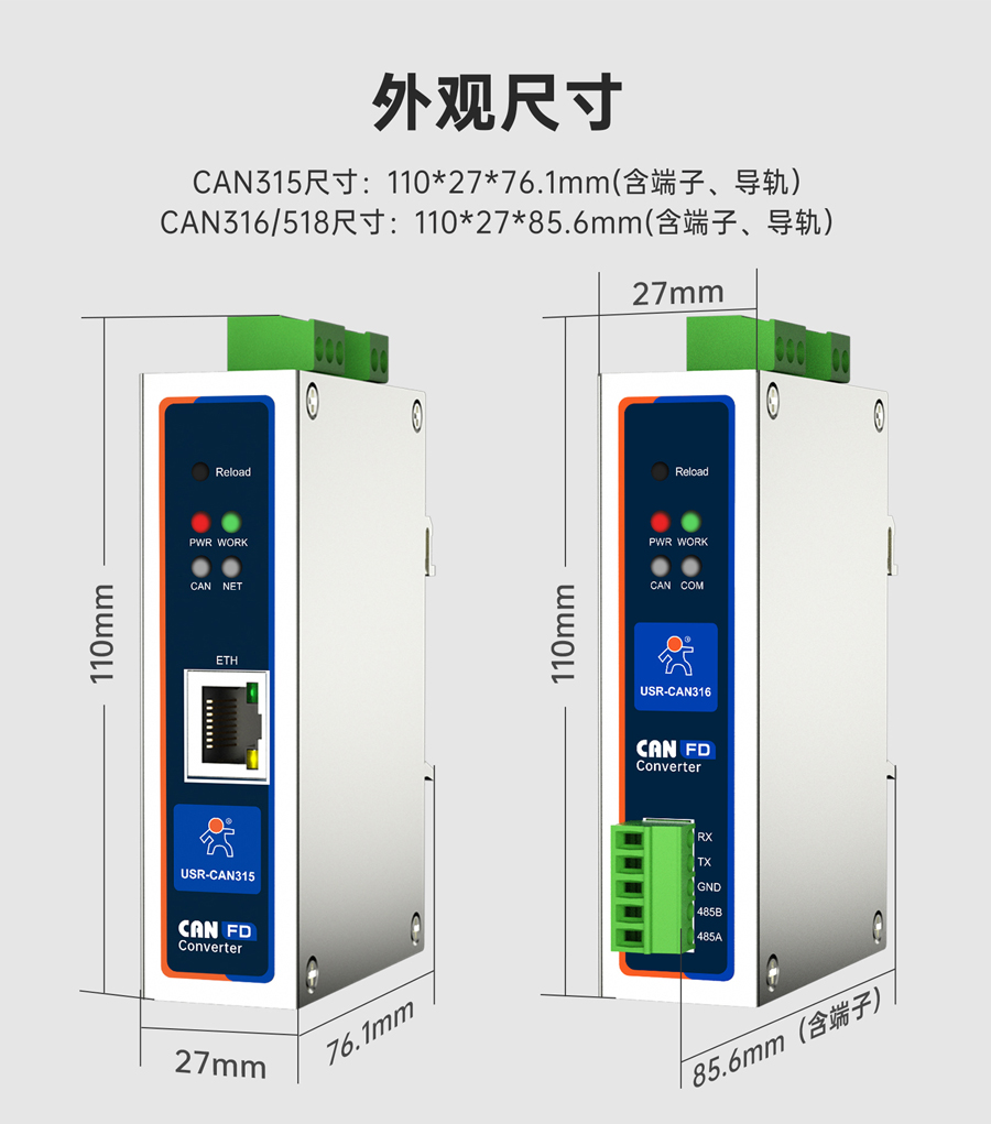 支持雙向轉(zhuǎn)換、僅網(wǎng)口轉(zhuǎn)CAN、僅CAN轉(zhuǎn)網(wǎng)口