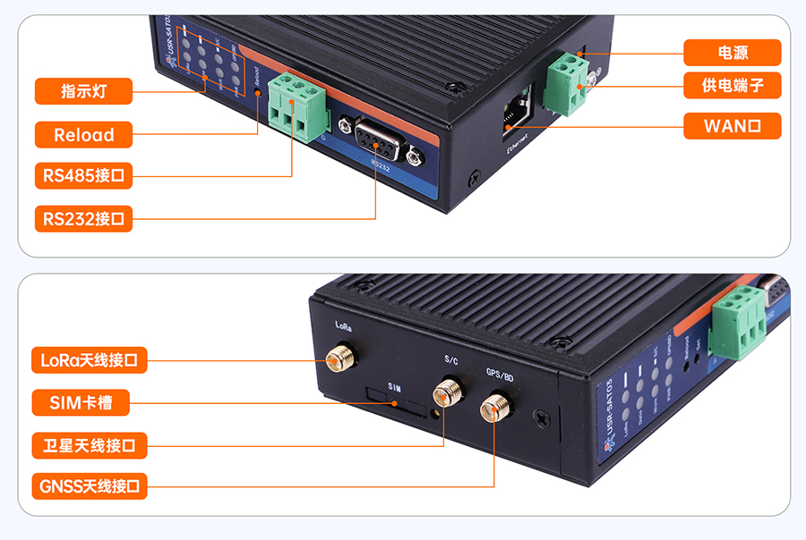 PWR(電源燈)、WORK(工作狀態(tài)燈)、S/C(衛(wèi)星通信燈)、DATA(數(shù)據(jù)通信燈)、GPS/BD(定位狀態(tài)燈)、LoRa(LoRa通信燈)